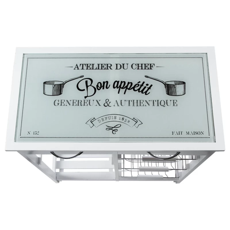 ATMOSPHERA Desserte De Cuisine Verre Blanc Modèle GUSTAF