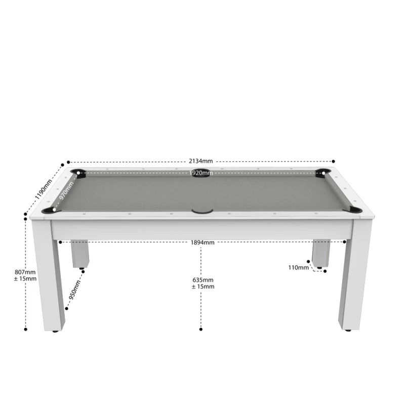 Pratique, avec le plateau dinatoire vendu séparément, ce billard peut se convertir en table de salle à manger pour 8 personnes.