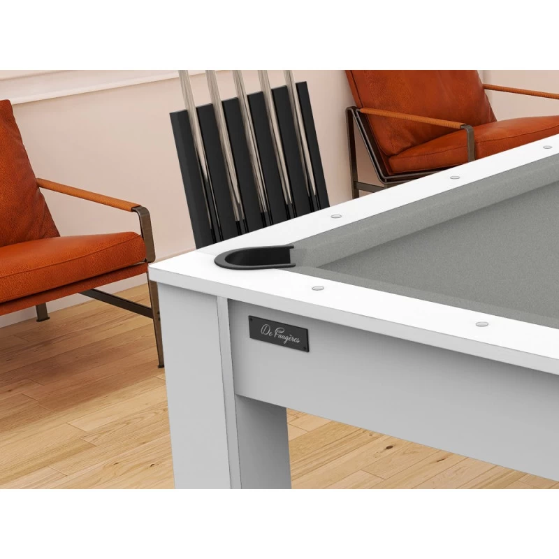 Découvrez le billard américain Arizona 7 pieds coloris blanc laqué / tapis gris (taille 7 FT).