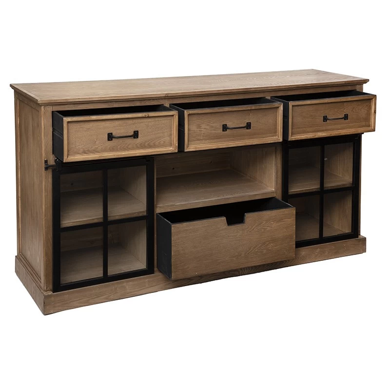 Optez pour un buffet robuste et tendance avec le buffet Danik composé de 2 portes coulissantes et de 4 tiroirs.