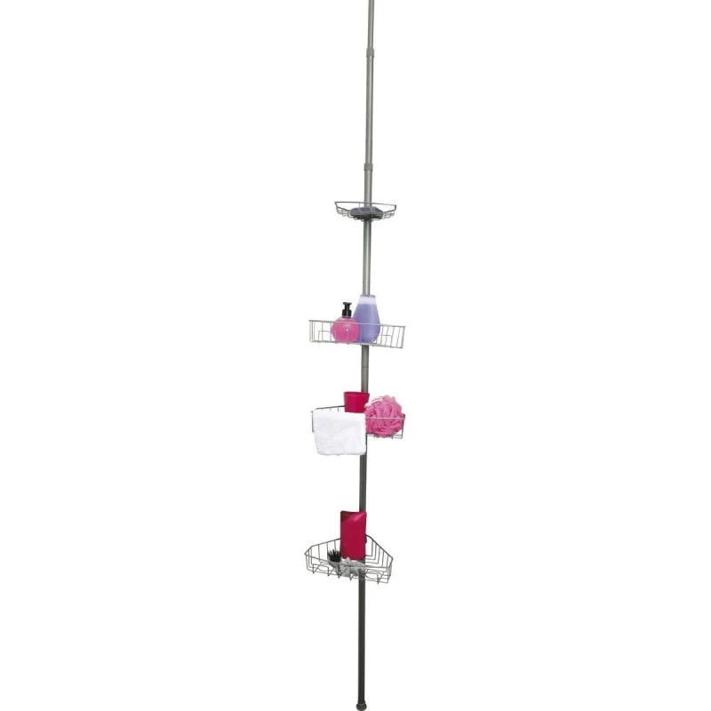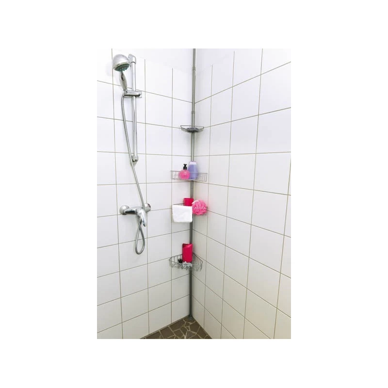 Pratique, cette colonne télescopique 4 paniers vous permettra de ranger tous vos produits de douche. Facile à installer sans clou ni vis. La barre verticale possède le même système avec ressort qu’une barre de douche que l’on pose simplement en la coinçant entre 2 murs ou entre le sol et le plafond. Hauteur de la colonne réglable maximale 289 cm. Position des paniers au choix tout le long de la colonne. 4 paniers.