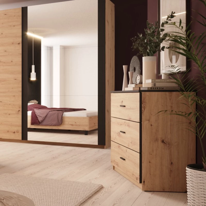 Commode 3 Tiroirs Nantes Noir Et Bois