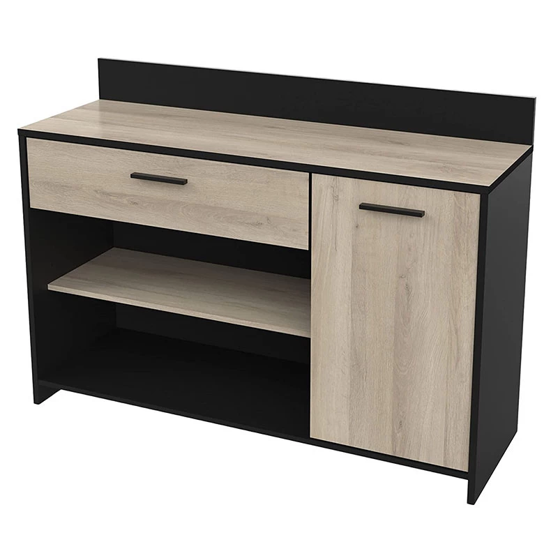 Sa tendance industrielle va vous séduire, il possède un tiroir, une porte avec étagère intérieure et de 2 niches.