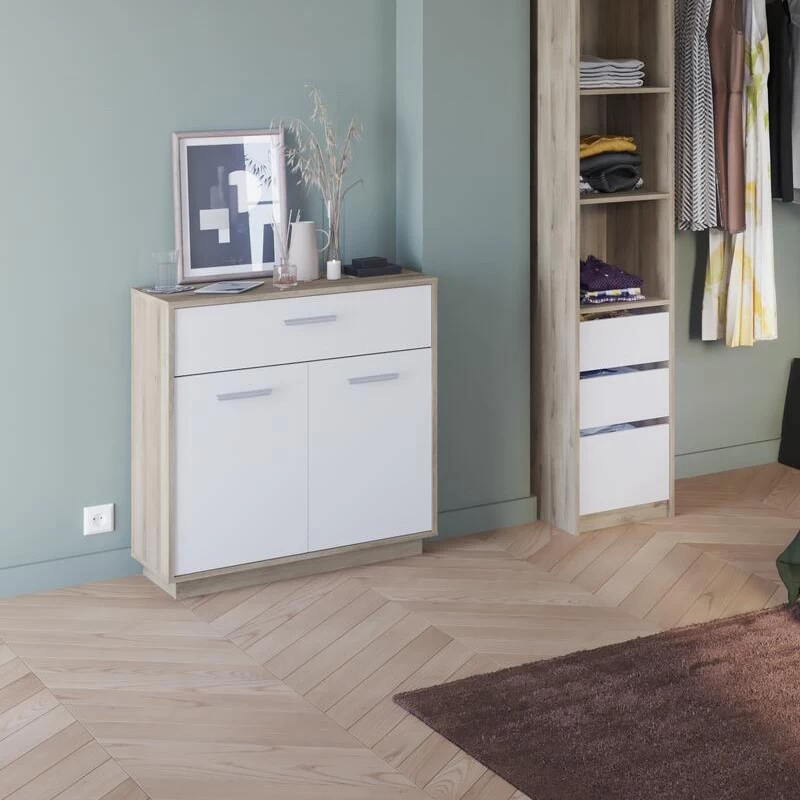 Pratique et sobre, découvrez le meuble de rangement 2 portes + 1 tiroir Léo.