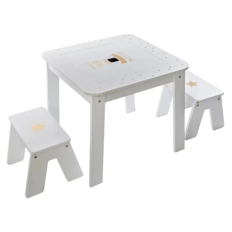 Ensemble Table + 2 Tabourets Enfant Blanc Doré Dream Atmosphera