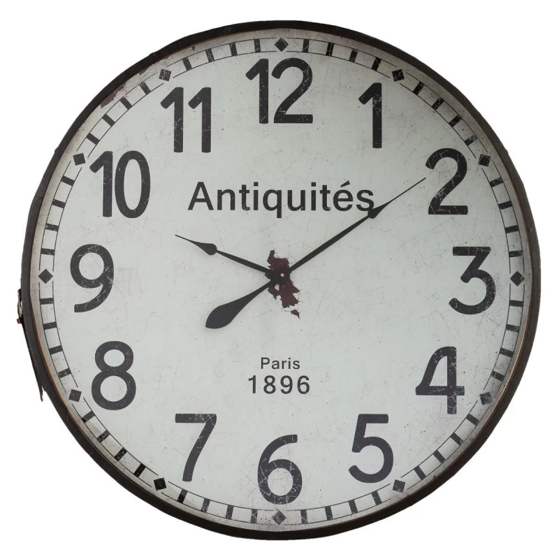 Horloge type vintage avec traces pour imiter la rouille et l’usure.