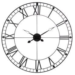 Magnifique horloge murale géante vintage coloris noir vieilli de 90 cm de diamètre donnera un charme indescriptible à votre intérieur avec son style à la fois moderne mais s’adaptant parfaitement à un intérieur ancien avec son style vieilli ! Fonctionne avec 1 pile LR06 (AA, 1,5V) non fournie.