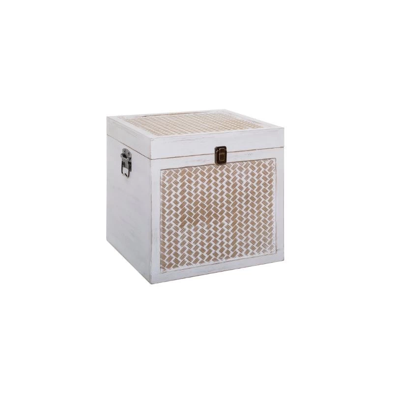Lot de 3 malles carrées cannage blanchi de la marque Atmosphera. Ces trois malles sont idéales comme rangement décoratif.