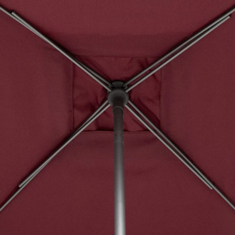 Cet été, protégez vous du soleil avec le parasol mat central carré en coloris bordeaux de la marque Hespéride.