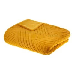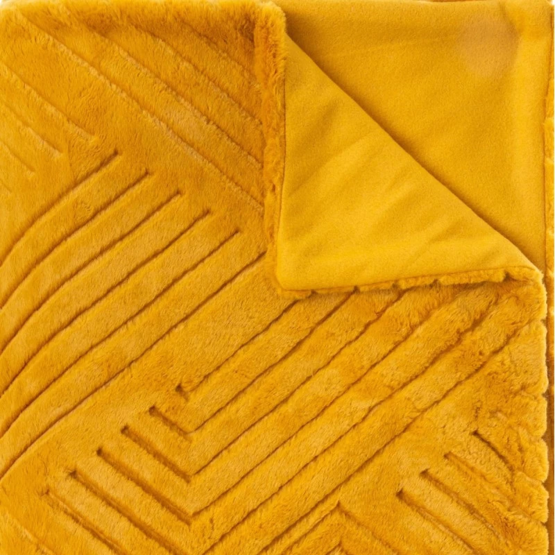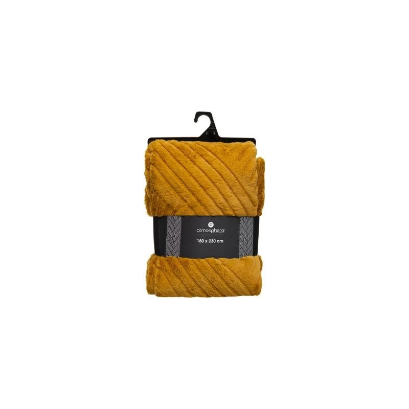 Plaid géant fausse fourrure 180×230 cm jaune moutarde de la marque Atmosphera.