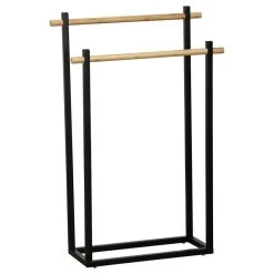 Choisissez l’élégance dans votre salle de bain avec le porte serviettes métal noir et bambou 2 barres.