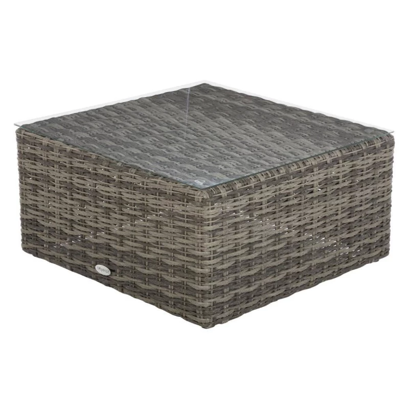 Conçue pour durer, la table dispose d’une structure en aluminium traité époxy antirouille, d’un habillage en résine tressée synthétique et d’un plateau en verre trempé.