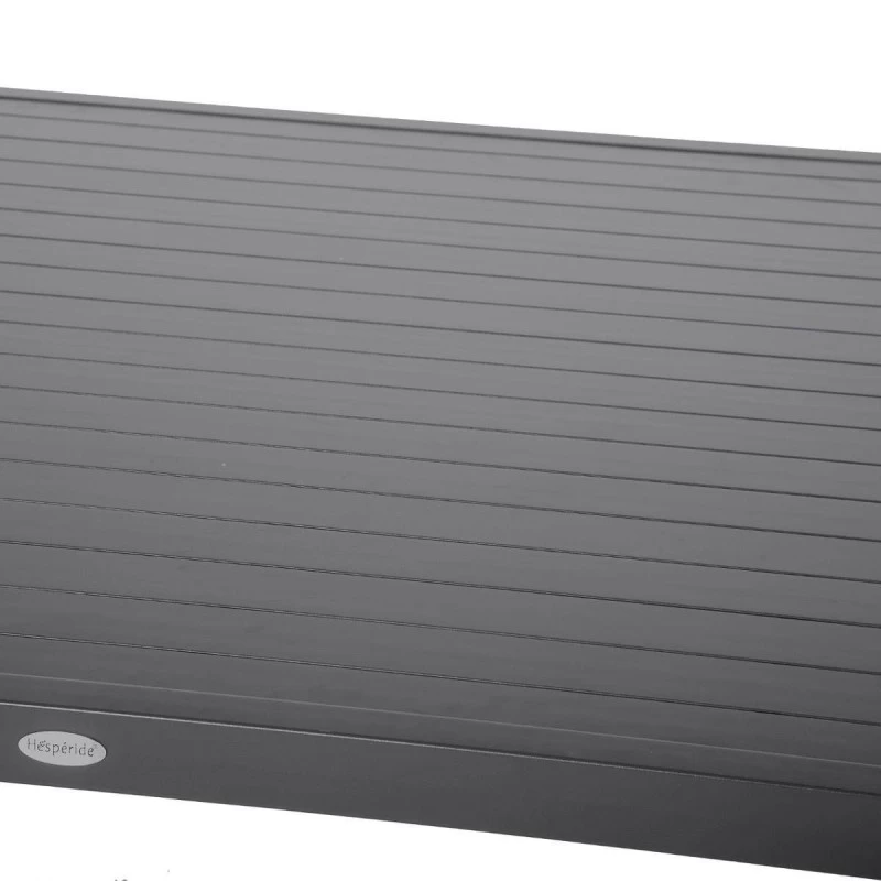 Cet été, installez vous autour de la table carrée fixe en aluminium Piazza en coloris graphite de la marque Hespéride.