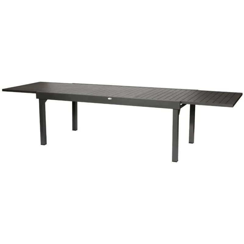 Profitez de bons repas au soleil avec la table rectangulaire extensible 12 personnes Piazza en aluminium en coloris graphite de la marque Hespéride.