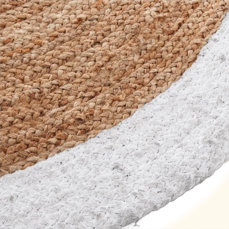 Tapis en jute avec bord blanc de la marque Atmosphera. Les tapis en jute ronds sont très tendance en ce moment, optez pour ce modèle avec bord blanc pour une ambiance cosy et naturelle.